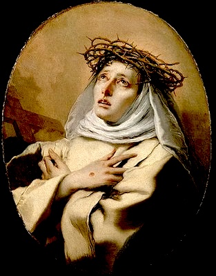 Canonizzata nel 1461, è la co-patrona d’Italia, la patrona contro il fuoco, la malattia, gli Stati Uniti, gli aborti spontanei, le persone ridicolizzate per la loro fede e le infermiere. La sua rappresentazione simbolica nell’arte include spesso un giglio per la purezza, un libro, un crocifisso e un cuore, che si riferiscono alle sue esperienze mistiche.